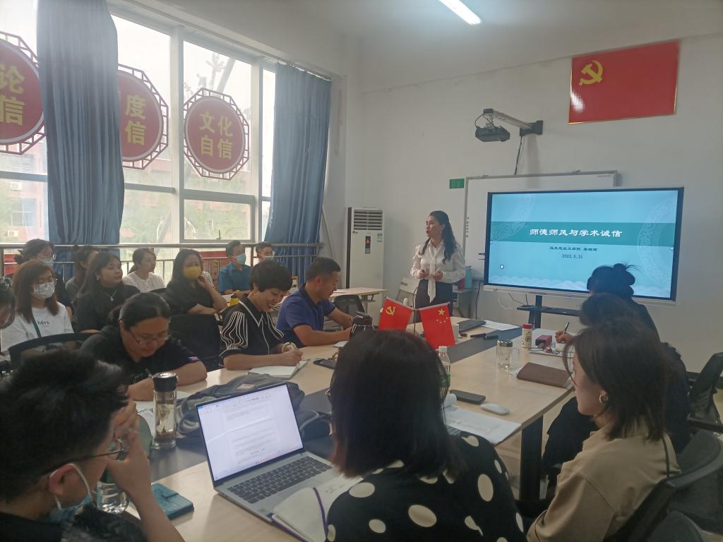 唐教授以“师德师风与学术诚信”为题,从“典型案例”、“科研诚信”、“师德师风”三方面为教师生动、深入地进行了讲解。她以国内近期发生的违反师德师风的案例为切入点,重点归纳了高校教师要警惕的主要的十二类师德师风失范类型,尤其是容易忽视的环节和方面。唐教授为全体教师解读了《科研诚信案例调查处理规则(试行)的通知》《关于对科研领域相关失信责任主体实施联合惩戒的合作务忘录》等国家科研诚信政策体系建设现状和要求,列举了高校学术不端行为受到的处罚的各类案例,重点对产生学术不端行为进行了个人层面和现实层面的深入分析,提出全体教师一方面要加强法律法规的纪律意识和规矩意识,一方面要加强诚信品德和警示教育。要从传统文化儒家为人之道的中心思想里追根溯源、培养教师主体优良的道德品质;要从教书育人的行动中践行社会主义核心价值观,实现教师主体“内诚”的外化。
