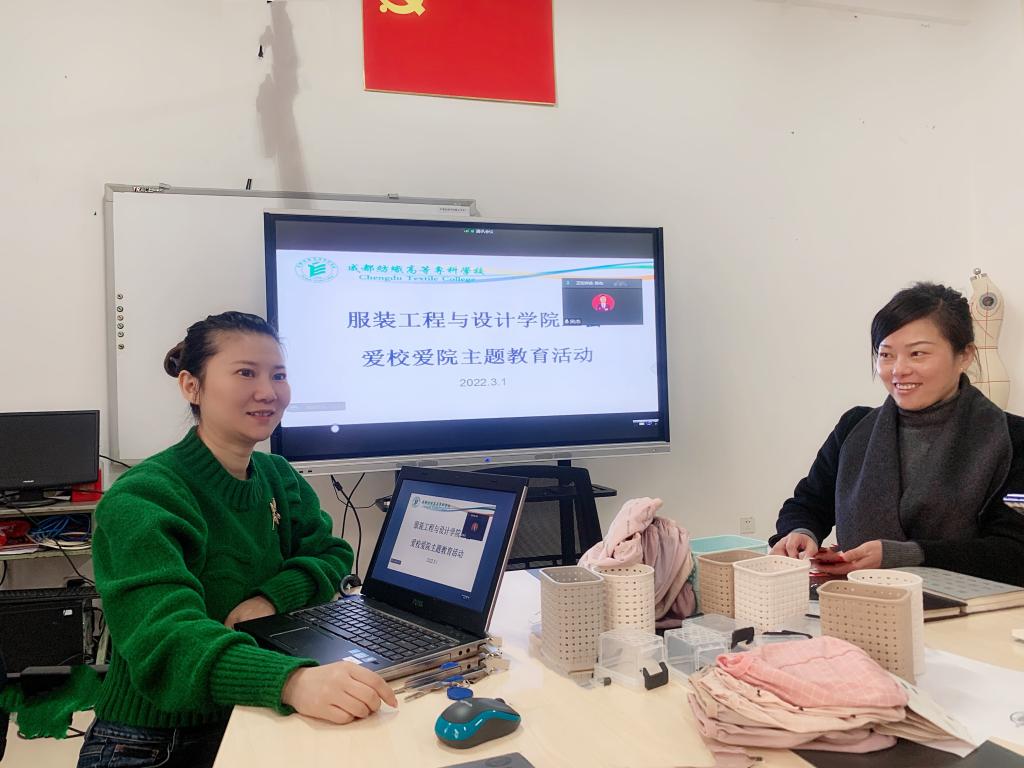 3月1日服装工程与设计公司党总支与公司工会在公司会议室E211联合举办了“爱校爱院主题教育”活动,疫情防控背景下,全院教职工通过线上线下结合的方式积极参与。