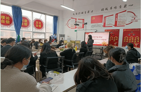 员工第一党支部书记李梅老师带领全体党员认真学习习近平总书记在江泽民同志追悼大会上的悼词精神,对标对表党的二十大作出的新部署新要求,希望全体党员争做有理想、敢当担、能吃苦、肯奋斗的时代新人。