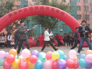 2011327,由服装系主办的“三月岷江社区志愿服务”活动在犀浦镇岷江社区盛大开幕,这次活动请到了岷江社区妇女主任王品慧女士,社区多对金婚夫妇、孤寡老人和部分留守儿童,还有服装系的青年志愿者们。