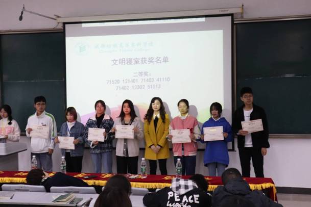 然后,进行新生军训内务比赛颁奖会,太书记、赵书记、李春红老师分别为在比赛中获得一、二、三等奖的同学颁发了奖状奖品。