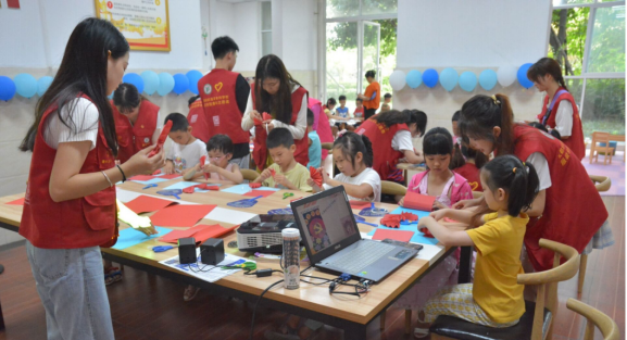 此次手工折纸活动不仅激发了小朋友们的手工创作灵感和创作热情,还让他们感受到了手工制作的魅力,体验了艺术创造带来的乐趣。一百年来,党以实际行动、辉煌业绩赢得群众的拥护和信赖,领导全国各族人民经过艰苦卓越的斗争,为我们带来了一个崭新的时代,今天志愿者们身体力行的带领小朋友们认识并积极制作党旗、党徽,是大家献给党最真诚的礼物。