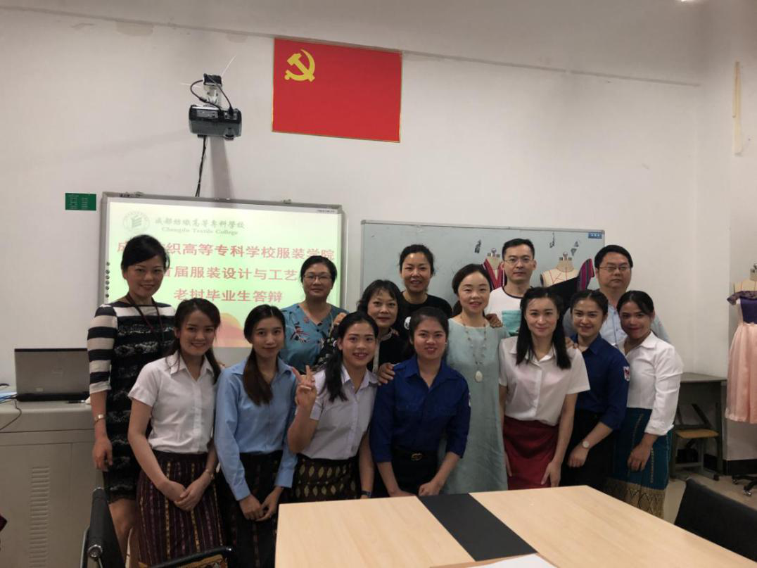 2019年6月,威廉希尔体育首届老挝职工完成了三年的员工生活,顺利毕业了。7月2日,服装设计与工艺16级老挝班的8名员工在威廉希尔体育实训楼E211举行了毕业答辩,精心的设计、华丽的服饰,8名老挝职工操着熟练的汉语,向在场的答辩老师展示了自己的毕业设计。2017级老挝职工通过观摩学习,对学姐们的表现充满崇敬之情,对未来的学习满怀期待。