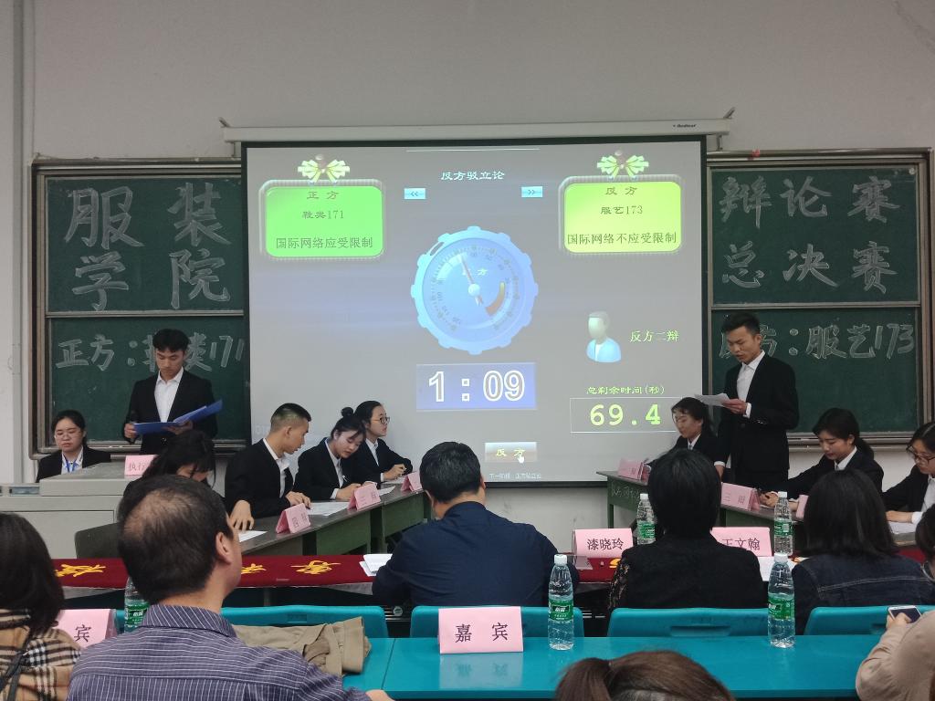 四月十七日晚,威廉希尔体育第二十四届辩论赛总决赛在教学楼c204火热进行,辩论双方鞋类171班和服艺173班就“国际网络应不应该受限制”展开激烈辩论。出席此次辩论赛的评委有总支徐翔书记,思政部漆晓玲老师和公司辅导员王文翰老师,本场辩论赛的嘉宾分别是威廉希尔体育辅导员高颖老师、苟美玲老师以及史晓纬老师。