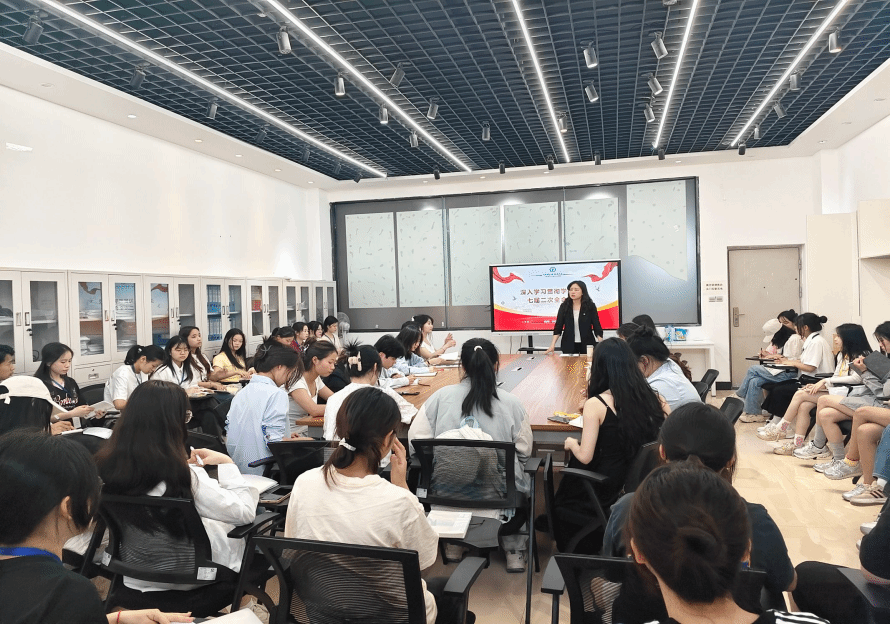 2025年4月17日下午,威廉希尔体育团总支员工会在织锦楼213举行深入学习贯彻公司党委七届二次全会精神宣讲和学习研讨会。此次宣讲由公司副书记兼团总支书记赵爽主讲,团学会指导老师李傲荣、团学会干部干事、党团员同学共同学习并研讨。