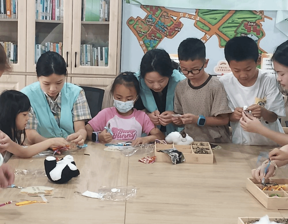 活动伊始,志愿者们早早来到现场布置,五彩的丝线、清香的艾草、柔软的布料摆放整齐,静静等待着被赋予新的生命。活动正式开始,志愿者王春宜首先向居民们介绍了端午节的历史起源以及香囊的文化寓意,随即进入端午知识问答环节,大家争相举手,笑声与掌声交织,将现场的气氛推向高潮。为了让居民们更直观地感受香囊制作的魅力,志愿者们播放了一段细致的教程视频。画面中,一针一线穿梭于彩绸之间,艾草的芬芳仿佛透过屏幕扑面而来。随后,在志愿者的耐心指导下,居民们纷纷拿起针线,指尖翻飞,将祝福与期盼缝进小小的香囊中。年纪稍长的居民手法娴熟,三两下便初具雏形,年轻的妈妈则带着孩子们细细琢磨,志愿者们穿梭其间,时而帮忙穿针,时而指点技巧,空气中弥漫着艾草的清香,也流淌着浓浓的温情。