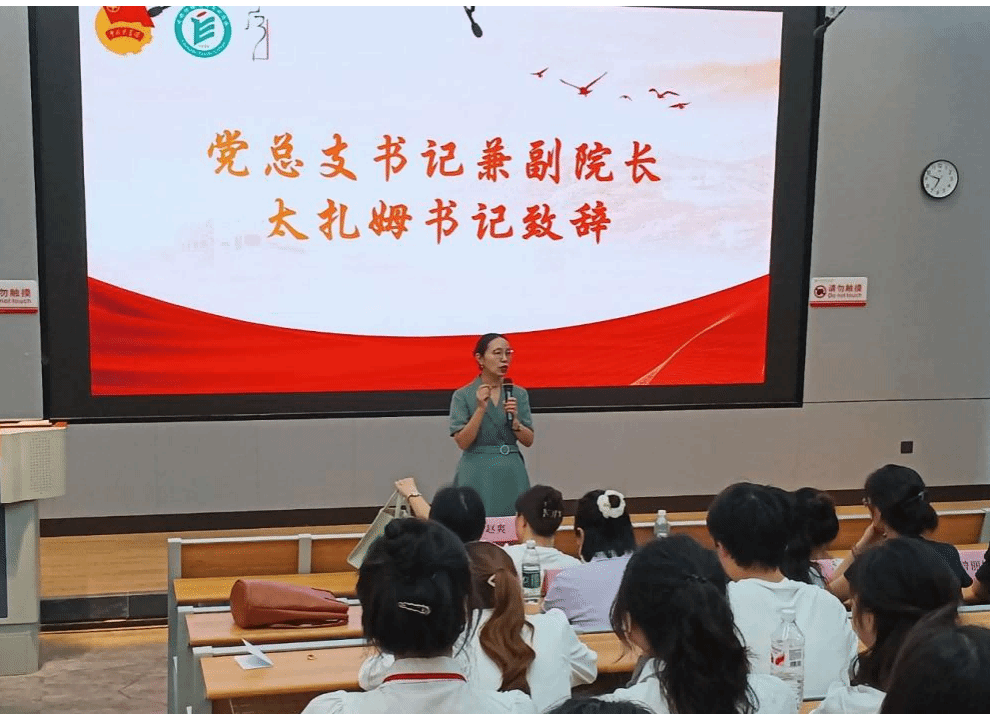 大会在铿锵的团歌声中拉开序幕。党总支书记太扎姆为大会致辞,她首先对上一届团学会成员的辛苦付出表示感谢,并向新任团学会同学们表示祝贺。她强调,换届是对过往工作的系统梳理,更是新一届同学们“积土而为山,积水而为渊”汲取经验、勇担重任的起点。她勉励同学们接稳“接力棒”,在公司平台历练成长,为公司公司发展注入青春动能。