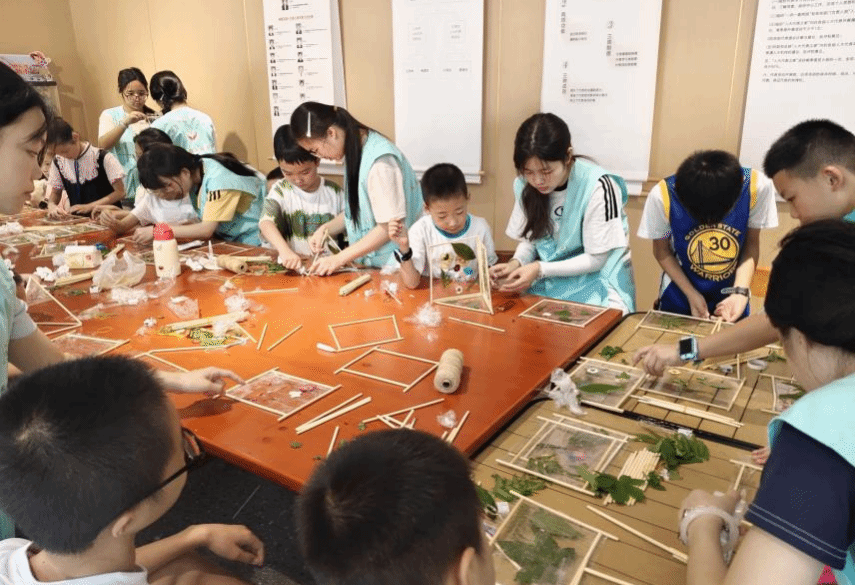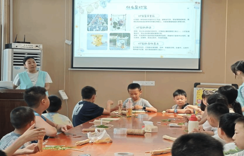 活动现场,色彩跃动,笑语飞扬。志愿者首先以生动讲述为孩子们勾勒出灯笼演变发展的历史长卷,揭示其从实用照明工具到象征团圆美满的文化演变密码。随后,课堂化身为创意工坊,孩子们兴致盎然地动手制作,发挥创造力与想象力,将素净的骨架缠绕固定,再精心挑选、粘贴形态各异的干花枝叶进行装饰。废弃的材料在童趣巧思中焕发新生,一盏盏独一无二、充满自然意趣的“非遗新灯”渐逐渐成型。小手在干花间穿梭,专注的神情与完成时的欢笑声交织,传统工艺的种子悄然浸润稚嫩心田。