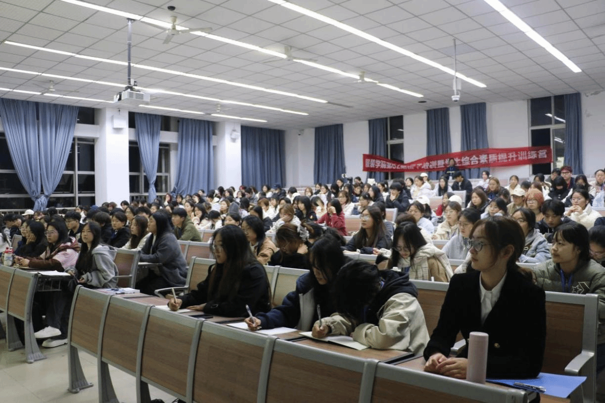 团总支员工会指导老师李傲荣、全体干部干事和2025级班长、团支书等近200人参加培训。