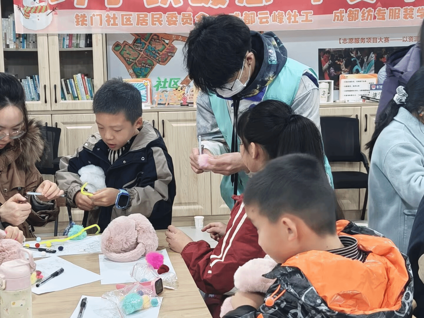 志愿者们抵达铁门社区后迅速完成准备工作,有序布置场地、调试设备。活动正式开始,志愿者们各司其职、紧密配合。宣讲台前,负责同学深入浅出地讲解安全知识,居民们专注聆听、踊跃互动,现场气氛热烈。手工区里,则是另一番暖心景象:志愿者手把手指导,帮助居民将绒线一步步变为冬日实用的耳罩。整个过程中,还有志愿者悉心引导、维持秩序,确保人人参与其中。真诚的服务与专业的素养,让温暖在指尖传递,让安全知识浸润心田,充分展现了青年志愿者的风采。