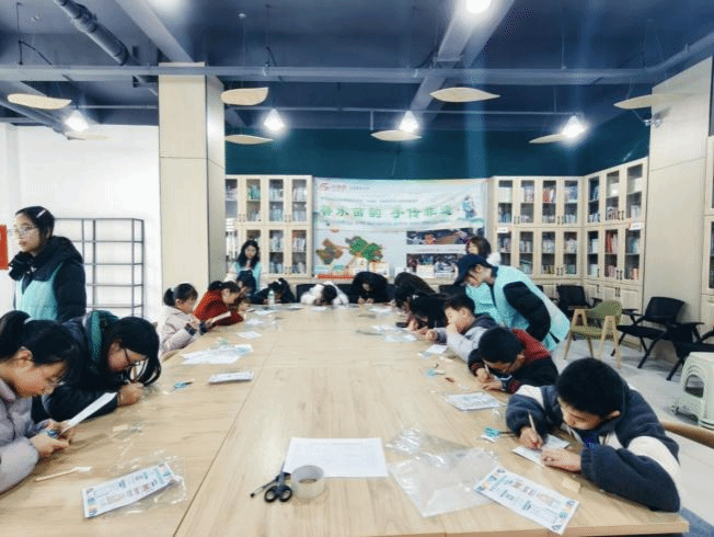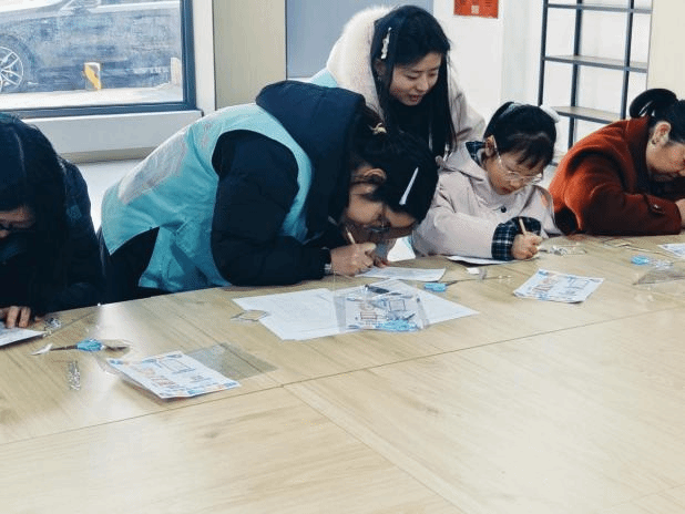 活动前期,志愿者们提前沟通、周密筹备,在现场引导、签到协助和材料分发等环节中积极协助家长与孩子参与活动,共同营造出轻松、有序的参与氛围。活动过程中,志愿者们主动上前,热情引导每个家庭融入互动,用亲切的交谈拉近距离,充分调动了现场的热情。他们巧妙地将苗族文化知识融入活动环节,耐心为孩子们讲解苗族簪子的历史与工艺,让小朋友们在欢乐的探索中自然而然地掌握制作方法,真正做到了“玩中学、学中乐”。整场活动始终洋溢着孩子们的欢笑声和志愿者温暖的陪伴,共同绘就了一幅文化传承、社区共融的温馨画卷。