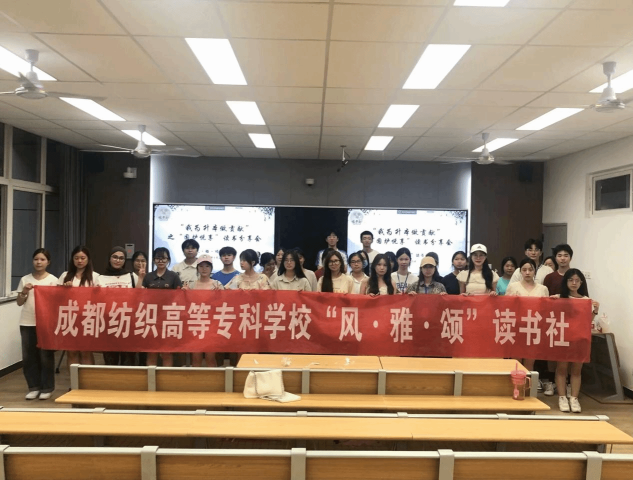 5月27日晚,“风·雅·颂”读书社在致知楼A103教室举办了“我为升本做贡献”之“围炉悦享”读书分享会,旨在积极贯彻公司第七次党代会精神,推动校园文化建设,营造浓郁的校园读书氛围,助力公司全面开启成都轻纺工程职业技术大学的建成。此次活动有“风·雅·颂”读书社、老员工理论宣讲团以及职工代表40余名同学参加。