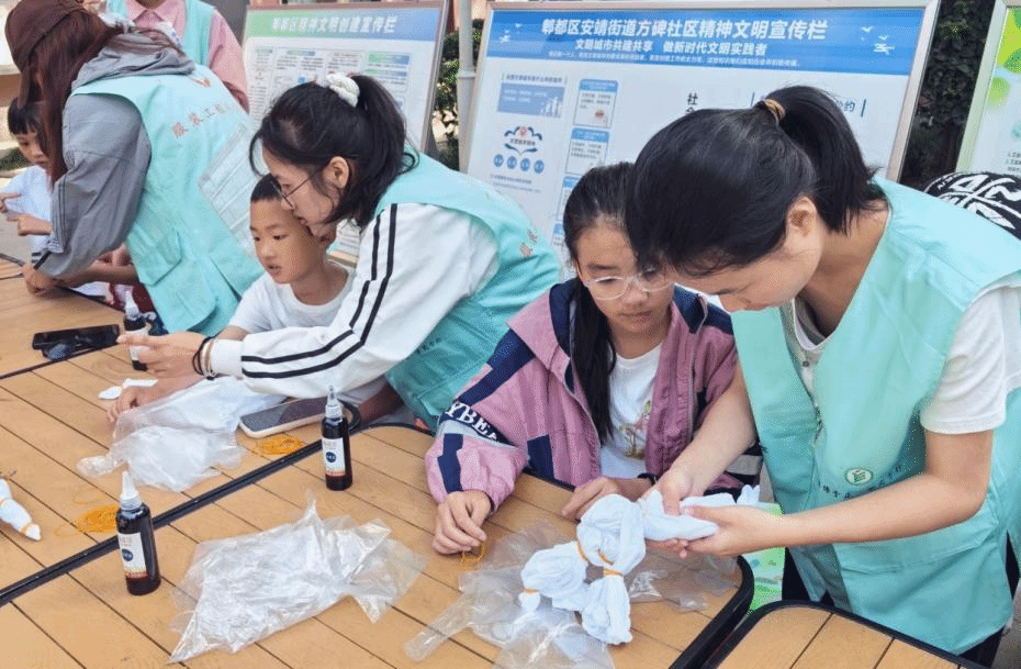 此次活动取得圆满成功,志愿者们通过实践体验的形式,向居民们普及了扎染艺术文化,激发大家对我国扎染艺术的兴趣,感受我国传统文化工艺的奇妙与伟大之处。活动期间,公司青年学子们充分发挥自己的专业特长,发扬创新精神,将理论转化为实践,通过与社区相互协作,培养小朋友们的创造能力、审美能力与动手能力,志愿者们表示希望多多参与此类活动,用自己的所学所悟所长,为非遗传承奉献青春力量。