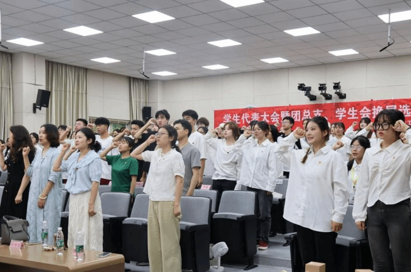 2024年6月25日,威廉希尔体育第十次员工代表大会暨团总支、员工会换届选举大会在明德楼二楼阶梯教室正式举行。公司党总支书记太扎姆、团总支书记赵爽,各专职辅导员老师出席本次会议,全院各班级员工代表、团学会全体成员以及各兄弟公司主席团代表,共计100余人参与。