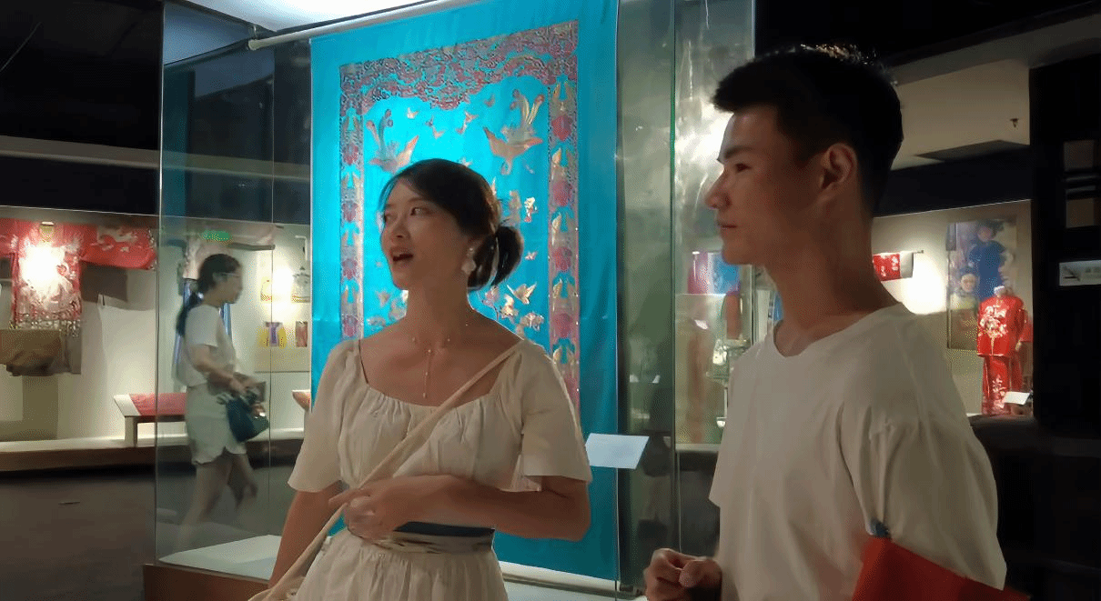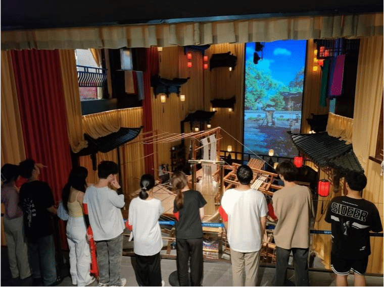 在博物馆讲解员的悉心引导下,团队成员全神贯注地聆听了关于蜀绣的悠久历史与丰富文化的讲解,每一件作品都仿佛在诉说着蜀绣艺术的独特韵味,令人叹为观止。让同学们更加深入地理解了蜀绣的起源、波澜壮阔的发展历程以及当前的繁荣现状,从而更深刻地感受古人智慧、传统技艺的精妙,进一步坚定文化自信。