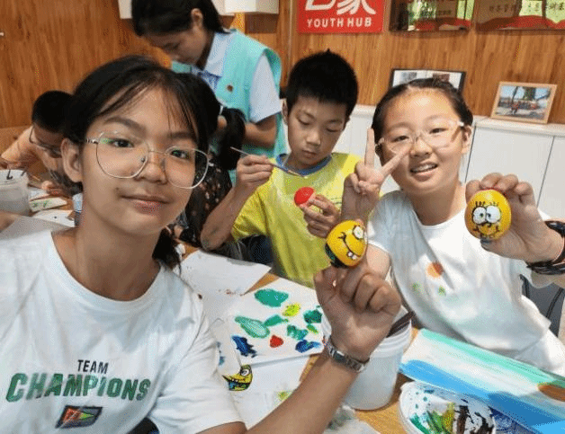 活动现场,团队为参与者们提供了丰富的绘画材料和工具,吸引了许多热爱绘画和喜爱手工艺的小朋友参加。小朋友们为了在鸡蛋壳上画出精美的图案,事先在白纸上根据自己的喜好进行构图、上色,随即在团队成员的帮助下,开始在鸡蛋壳上进行绘画。这些看似无用的蛋壳,通过小朋友们发挥想象,挥舞彩笔,将普通的鸡蛋壳变成了色彩斑斓的艺术品,焕发出了新的生命。蛋壳也因其独特的形状、大小,成为孩子们展现创意的绝佳材料。