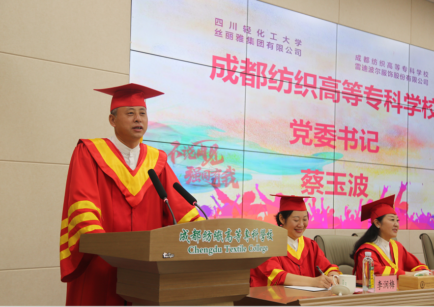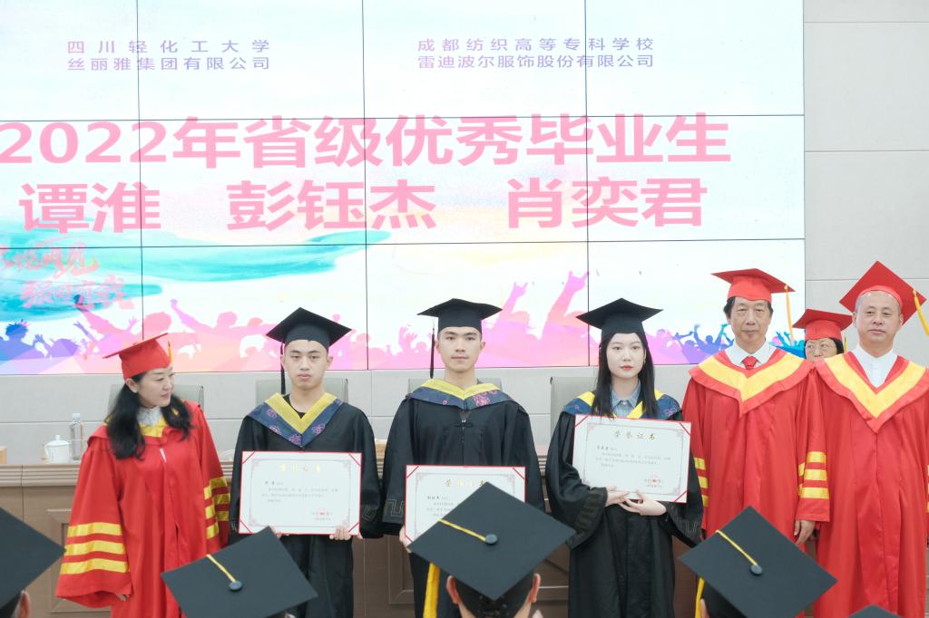 四川轻化工大学党委常委、副董事长颜杰,成都纺织高等专科公司党委书记蔡玉波,公司党委副书记、董事长石静,宜宾丝丽雅集团有限公司人力资源部经理李润梅、雷迪波尔服饰股份有限公司副总裁张斗,共同到场见证2022届学子成长蜕变的重要时刻。授位仪式由公司党委副书记周红主持。