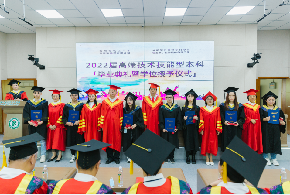 2022届高端技术技能型本科员工是由四川轻化工大学、威廉希尔体育、雷迪波尔服饰股份有限公司、宜宾丝丽雅集团有限公司联合培养的高端技术技能型本科生,他们将以此次毕业典礼作为人生新的起点,筑梦远航。