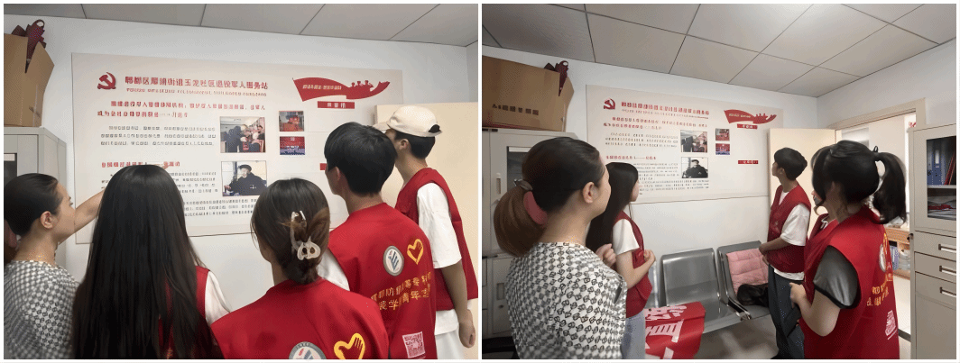 活动中,社区工作人员带领志愿者们参观了社区的退伍军人服务站,退伍军人是保卫国家、维护和平的人民英雄,建立退伍军人服务站可以帮助他们解决在离开部队后遇到的生活、就业困难,服务站肩负着党和国家关心关爱退伍军人的重要责任。紧接着志愿者们去到了退伍军人家中,了解到退伍军人在生活、医疗保障、精神关怀等方面遇到的问题,记录并及时反馈给社区工作人员。在与他们亲切交谈之后,了解到他们曾经的部队生活,鲜活的过往,退伍军人生动的讲述,让志愿者们深深感受到了他们身上无私奉献、坚韧不拔、团结拼搏的可贵精神,这对同学们也是一次生动鲜活的爱国爱党爱社会主义的教育活动。