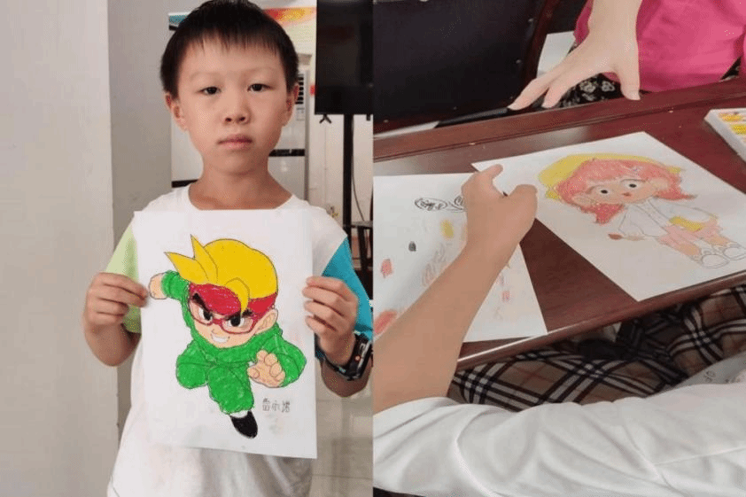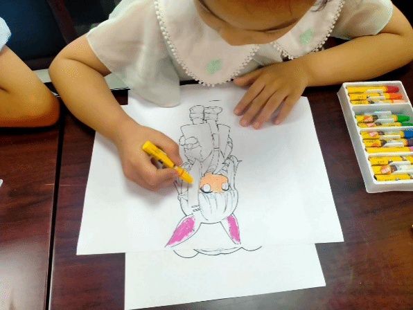 活动开始前,团队成员便为孩子们准备好了此次所需线稿图案。志愿者们通过有趣的游戏带领小朋友们进入色彩课堂,以理论宣讲、双语动画视频等方式,为孩子们提供色彩搭配的方向,引导他们充分发挥自己的想象进行上色。在填图绘画的实践过程中,志愿者们也耐心地进行了一对一指导,及时帮助遇到困难的小朋友们解决问题。课堂最后,孩子们展示了丰富多彩的作品,他们的笑容中洋溢着满足和喜悦,父母们的眼中也充满自豪。
