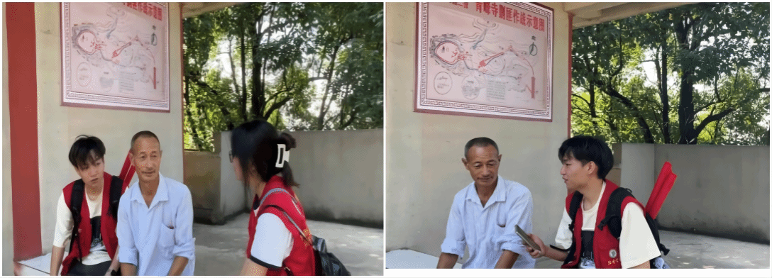 游客张先生看到我们这支实践队伍,便主动与团队成员们进行交流。他回忆说自己曾与青峰寺之前的两名山上余匪一起工作过……当时剿匪时,那两名山匪年龄还小,政府对他们进行教育改造,后来政府还给改造好的两名余匪分配了工作,他们至今都还健在。张先生说咱们中国共产党是伟大的队伍,是真正为人民服务的政党。