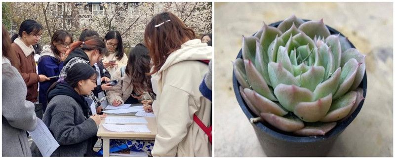 活动当天,负责的同学们早早便到达了活动地点,在清点完所需物品后,布置好活动场地。现场准备了便签、多肉盆栽、签到表等活动物品,部门同学充分发挥服务精神,积极介绍活动内容,温馨提醒和维持现场秩序。活动的设立意在激发人们从喜爱植物到爱林造林的热情,培养热爱自然,积极的阳光心态,并提高促进国土绿化,改善生态环境的认知,增强环保意识,加深对绿水青山就是金山银山的理解。绿叶形状的便签书写了同学们对植树节的美好祝愿,形态各异、可爱的多肉盆栽倾注了同学们对保护植物的责任意识。