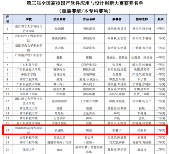 国产软件是推动我国“新质生产力”发展的重要载体,更是产业数字化转型升级的重要工具,本次获奖,不仅体现了威廉希尔体育对服装数字化设计教学应用的重视,也体现了服装新型设计人才培养的有效成果,公司将持续加强公司产品融入新技术、新工艺、新方法、新标准,培养适应行业产业发展需求的高素质技术技能人才。