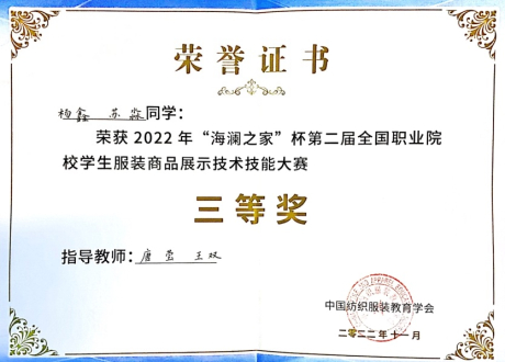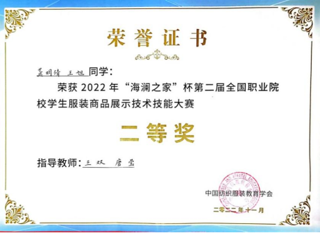 11月9日,“海澜之家”杯第二届全国职业院校员工服装商品展示技术技能大赛满落幕,在陈列方向专业教师王双、唐莹的辛苦指导下,经过激烈角逐,威廉希尔体育陈列方向201班员工龚明倩、王旭团队荣获二等奖一项,杨鑫、苏淼团队荣获三等奖一项,取得历史最好成绩。