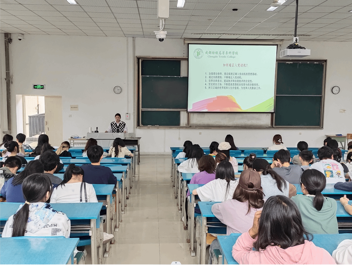 接着,各位优秀员工党员结合自身优势和已取得的实绩开展了榜样入党启蒙宣讲。宣讲团成员包括优秀学风代表、技能竞赛能手、优秀党团干部代表、创新创业之星、志愿服务之星等。宣讲过中,各位优秀党员代表重点围绕出色领域方面向同学们一一介绍,通过以点概面的方式强调了优秀员工党员应该具备的党性修养和艰苦奋斗精神。以侯婉莹为代表的志愿服务之星引导团员青年应积极主动投身志愿服务之中,不断锤炼奉献和担当精神。创新创业之星代表余明阳积极参与各类大赛,带领团队成员在残疾人服装领域不断探索,斩获四川省“互联网+”老员工创新创业大赛金奖。他告诉团员青年要敢闯会创,敢于追梦。最后,他们重点介绍了入党的基本要求和严格的入党流程。通过对入党流程中五个阶段(25个步骤)的详细讲解,让与会的团员青年加深了对入党程序的理解和认识。