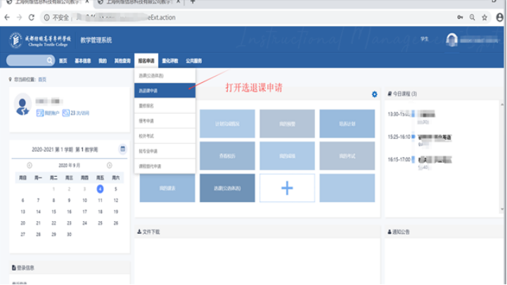 七、本次选课因校园网安全规范,不对外网用户开放教务管理系统,员工可在第一周星期一中午12:30分到公司实验楼校机房进行选课,听从机房管理老师安排;如果开通了教育网上网业务的同学,也可以在寝室自行上网选课;亦或者在公司图书馆电子阅览室以及利用公司wifi登录http//www.cdtc.edu.cn进行选课。