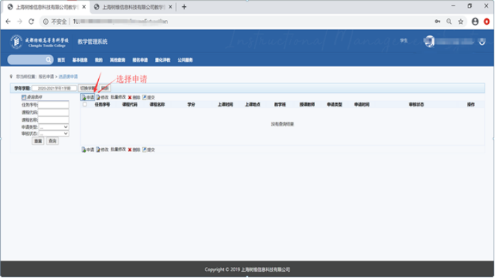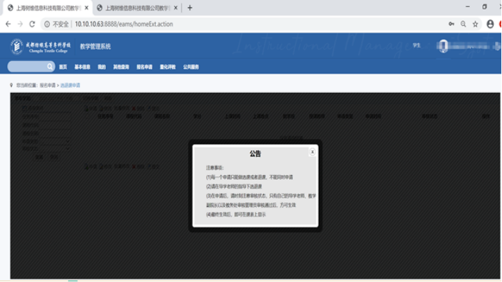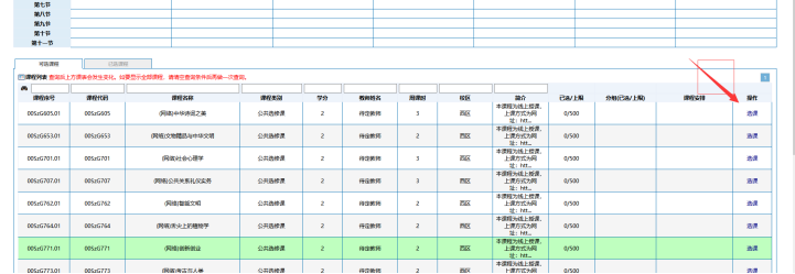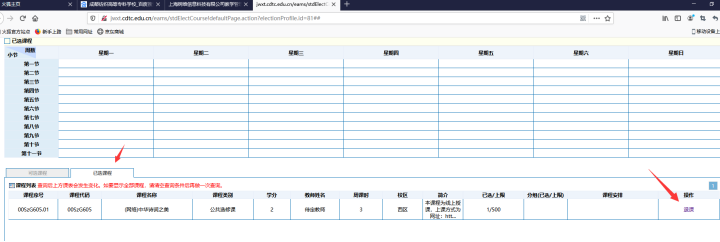 (2)进入选课后,可以点击按钮,弹出提交成功后则选课成功