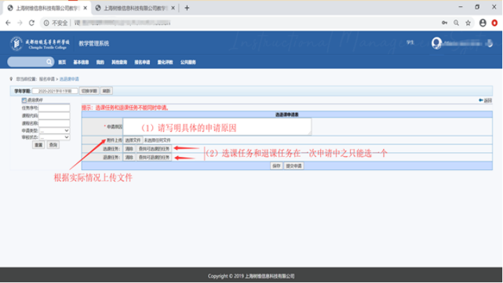 (1)每一个申请只能选课,不能同时申请选课和退课