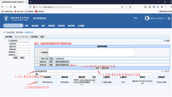 (1)每一个申请只能退课,不能同时申请选课和退课