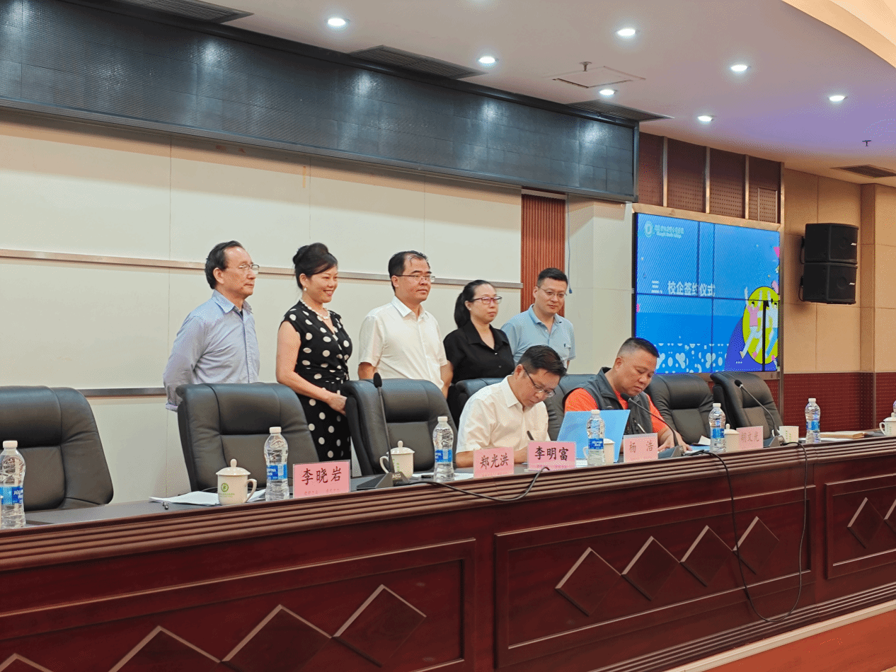 现场,公司与佛山市科丽达针纺科技有限公司董事长胡文光签订技术服务校企合作协议,今后协议双方将组建“企业导师+公司团队”团队创新融合、共同培养新媒体运营人才,让同学们“借大赛学能力”、“借大赛助就业”、“借大赛助创业”,通过大赛项目提升员工的创新创意设计和开发能力,实现以赛促学、以赛促教、以赛促用,助推公司新媒体运营人才与创新创意人才的培养。公司还将在功能性针纺面料开发、针纺服装服饰产品设计等方面与公司开展跨学科、跨公司的全面合作,以拓宽纺织服装领域人才培养就业面向和育人路径,提高员工就业竞争力。