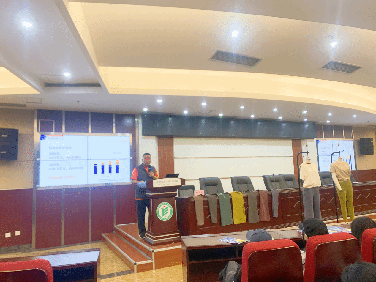 佛山市科丽达针纺科技有限公司董事长胡文光向同学们介绍了项目背景,详细讲解了大赛规则和在各大短视频APP上运营的方法和技巧,并通过一些真实生动的案例为同学们分享了实战运营的经验。