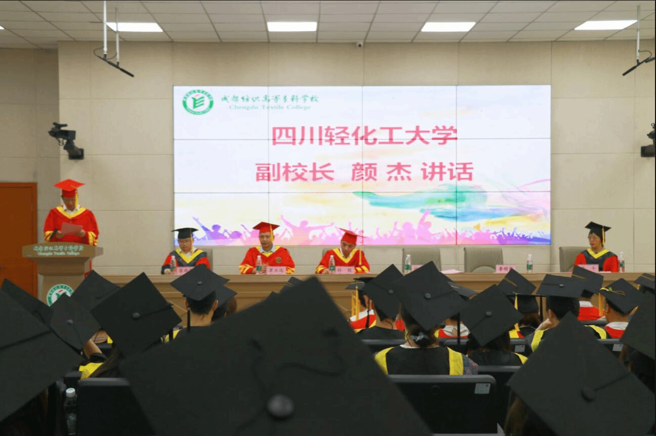 颜杰代表四川轻化工大学向毕业生们致辞,勉励同学们面向新征程、踏入新领域,一是要保持学习的热情,树立终身学习理念,在工作岗位坚持谦虚谨慎、持续学习好习惯。二是勇敢追求梦想,以无畏的心态追逐梦想,无论路途多么艰难,不要轻言放弃。三是积极面对挑战,在奋斗中历练,在拼搏中成长,竭尽全力创造不平凡业绩。四是不忘回馈社会,用自己的知识和技能推动社会进步,在担当中历练、在尽责中成长,永葆韧劲,向上拔节,为国家和社会做出更大的贡献。