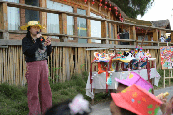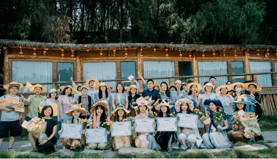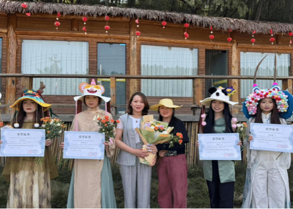 活动还设置了献花互动与授证仪式。现场观众通过鲜花投票表达对作品的喜爱,“串门计划”代表向导师团队献花致谢。张树敏老师与杨舜如处长为参与创作的梅礼旭、王佳蓉等6名同学授予“简阳前锋村新村民”证书,肯定他们在非遗活化实践中的贡献。