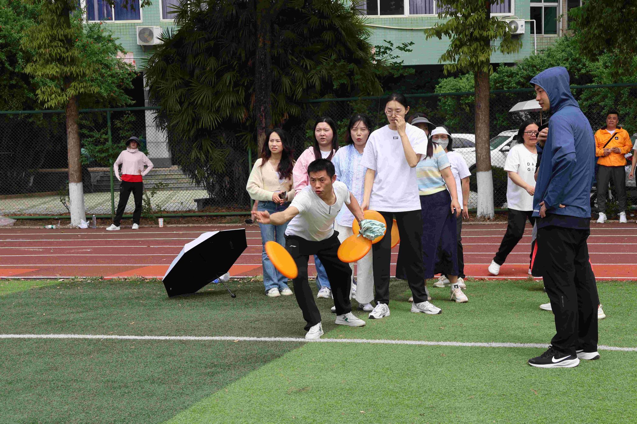 消防演练强技能 趣味赛事聚人心。下午的教职工趣味竞赛中,公司教师团队奋勇争先。在“消防逃生技能比赛”中,教师们动作规范、配合默契,将日常安全培训成果转化为赛场上的高效协作;“集体持杆携手向前”项目则考验团队平衡与协调,队员们喊着整齐口号稳步冲刺,引得观众阵阵喝彩。随后的“飞盘九宫格”和“趣味投篮大挑战”中,教师们各显身手,既有精准投掷的“神射手”,也有幽默失误引发的欢笑,赛场气氛热烈而温馨。