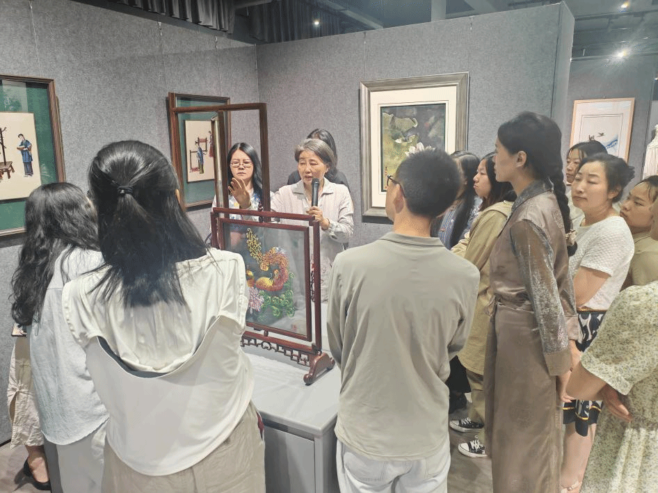 会后,朱利容教授带领学员参观绣艺苑研学馆,并为学员们详细介绍了馆内展品,为学员们后期学习打下坚实的基础。