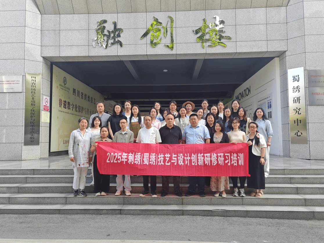 本次研修班是落实《中国非物质文化遗产传承人研修培训计划实施方案(2021-2025)》的重要举措,旨在通过系统性培训,提升蜀绣非遗传承人群的技艺水平与创新设计能力,推动蜀绣技艺在蜀绣创新产品设计的应用转化,为川渝非遗保护与乡村振兴注入新动能。研修班面向全省择优录取了22名学员,重点考虑基层传承人与非遗工坊从业者。参训学员将通过脱产学习,系统掌握蜀绣传统技艺与现代设计理念,并完成个人作品创作与展示,为非遗技艺的产业化发展探索新路径。培训为期30天,采用“理论+实践+研学”的多元模式,涵盖非遗知识产权保护、刺绣图案创新设计、文创产品开发、品牌策划等课程,根据学员特点因材施教,进行刺绣技艺的实践学习,并设计创新与制作刺绣产品,组织学员赴三星堆博物馆、孟德芝大师工作室、西昌、会东等地开展实地研学,促进传统技艺与现代需求的深度融合。