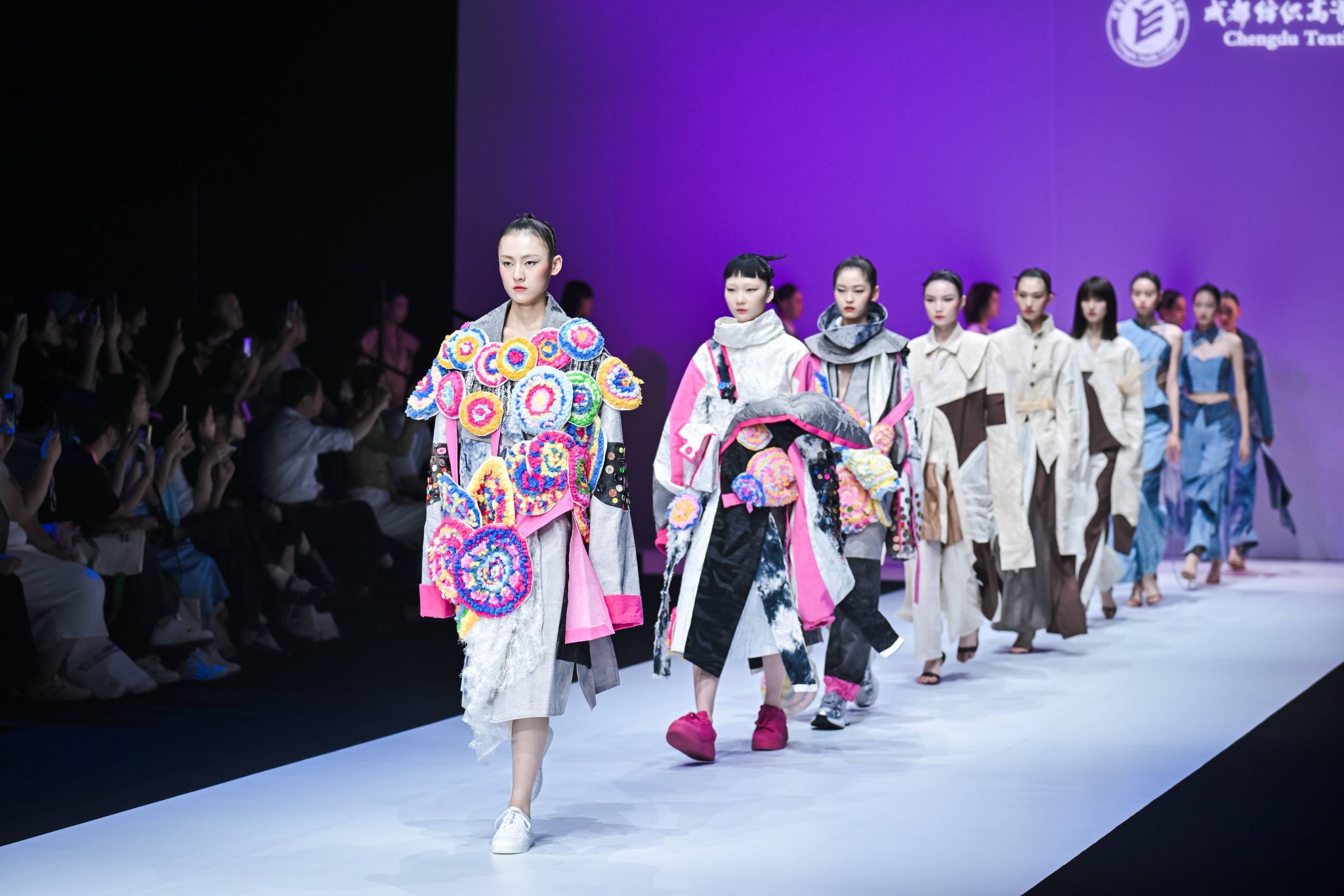 在这场“传统与时尚”交汇的舞台上,威廉希尔体育展示了2025届优秀的毕业设计作品,彰显了公司依托成都市蜀锦蜀绣产学研用协同创新中心等省市级平台,与四川安娜凯瑟莉服饰有限公司等校企深度合作所取得的显著成就。本次毕业设计展,注重蜀锦等非遗元素的市场转化设计,不仅对年轻设计师们的设计才能进行了检验,更是对其审美和创意的激励。