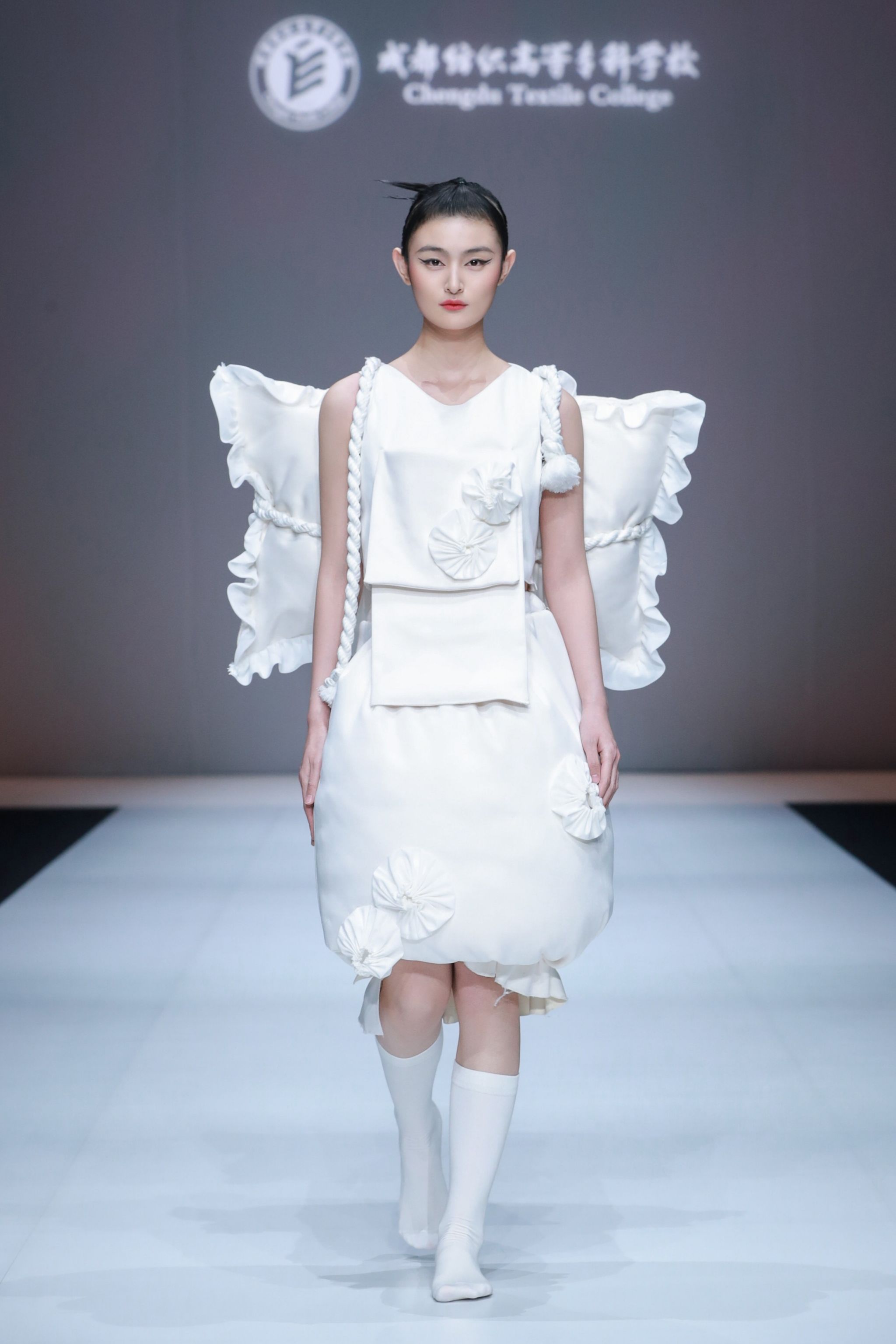 第三部分旨在展现年轻设计师的创新精神,其设计作品宛如时尚领域的一场革命,彻底颠覆了传统模式。通过对日常家用纺织品和多彩的服装辅料的再创造,设计师们大胆创新了服装的轮廓设计,体现了现代年轻人的生活理念和精神追求。