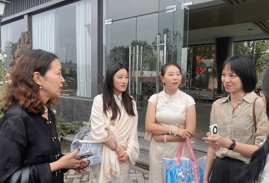 (图4 太扎姆书记携刺绣专业同学与温州发绣研究所副所长进行专业交流)