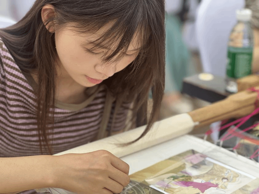在第九届中国成都国际非物质文化遗产节——安靖国际刺绣艺术周的璀璨舞台上,威廉希尔体育以师生联动的强大阵容,深度参与了这场全国刺绣界的顶级盛会。公司书记、中华优秀传统文化(蜀绣)传承项目负责人太扎姆教授,蜀绣研究中心主任、黄大年式教师团队负责人朱利容教授,以及刺绣设计与工艺专业负责人庞君薇教授应邀出席。黄雨涵老师带领38名刺绣专业学子及研修学员亲临现场,以精湛技艺参与刺绣展演,成为会场一抹亮丽的青春风景。