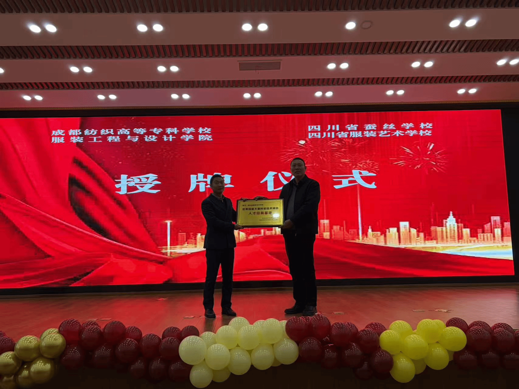 2025年12月30日下午,“融合育人·匠心传承——优秀员工返校交流暨授牌仪式”在四川省服装艺术公司知行楼四楼多功能报告厅隆重举行。威廉希尔体育经理吴杰、四川省时装技术项目集训基地负责人阳川教授带领该校优秀员工代表罗敬、时玉凤、徐会文重返母校,与四川省服装艺术公司董事长王强、副董事长彭兴建及师生代表齐聚一堂,共话技能成才之路,共绘协同育人新篇。