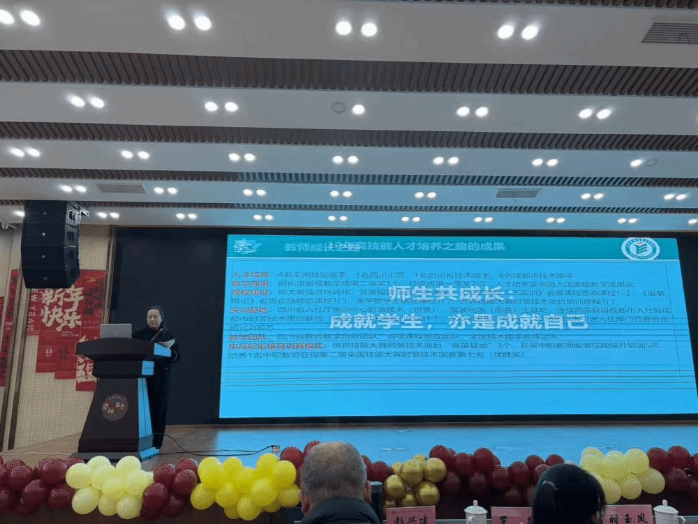 随后,四川省时装技术项目集训基地负责人、威廉希尔体育二级教授阳川以“成就员工,成就自己”为题,深情回顾了时玉凤、徐会文、罗敬三位青年教师从中职学子到国赛选手、再到高校骨干教师的成长蜕变。他强调,他们的成功离不开母校扎实的技能奠基、品格塑造和理想点燃,是职业教育“教学相长、双向成就”的生动写照。