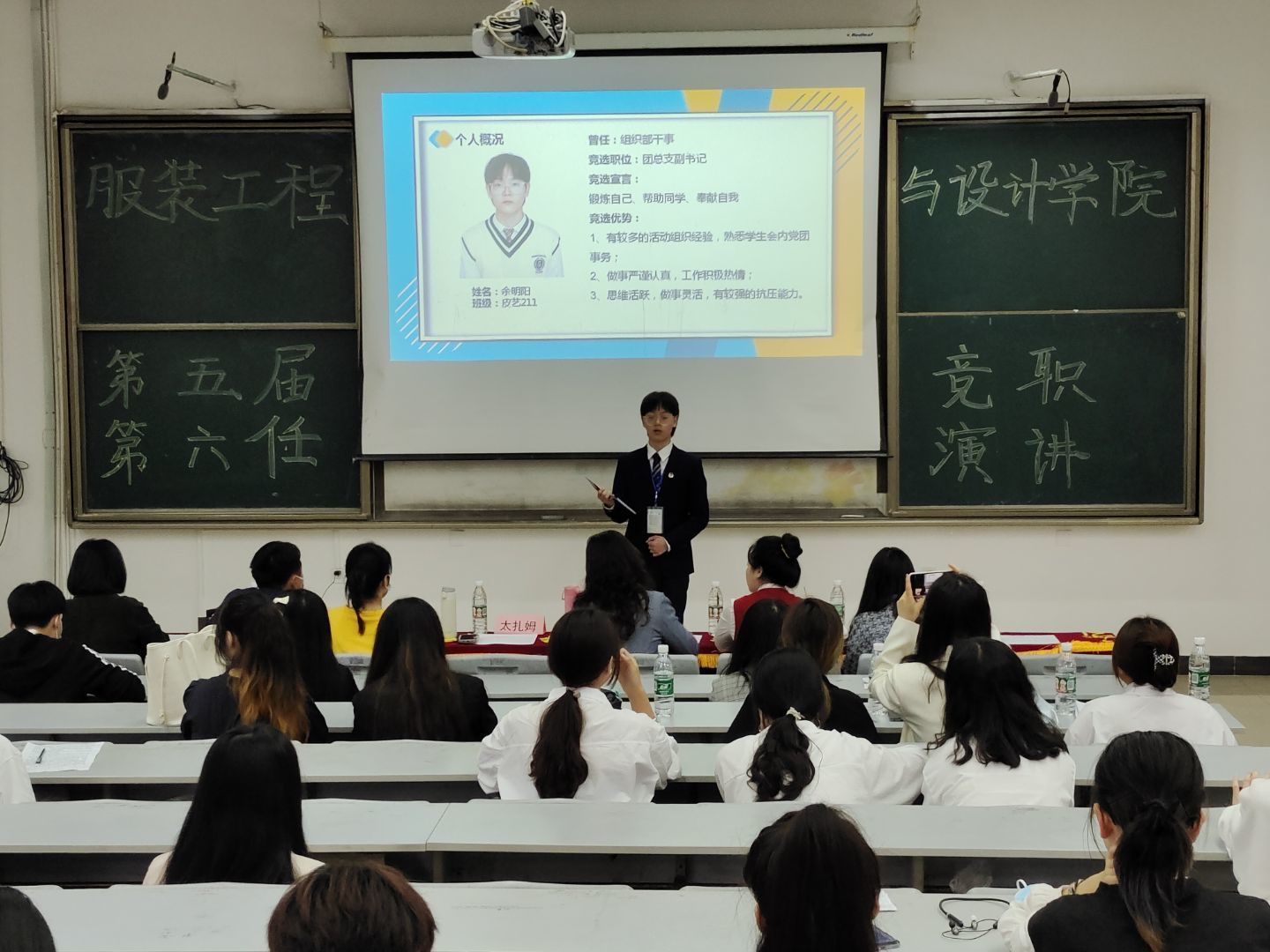 5月18日,干部选拔第三阶段工作——竞职演讲。后备干部们分别从自我介绍、竞选理由、工作优势及未来工作构想等方面进行了细致的阐述,演讲逻辑清晰,声音铿锵有力,充满对团学会及未来工作的热情与活力,且纷纷表示,不管是否当选,都会保持初心,抱着积极向上的态度面对生活,做好自己本职的工作。