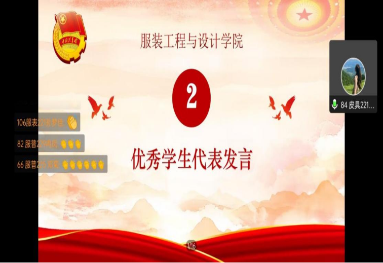 在表彰大会上,服装与服饰设计221班的李春红同学作为优秀员工代表发表感想,她讲道:虽然学习的时间只有6天,但是老师们精彩的讲授,为我们指明了前行的方向,让我对未来的学习、工作形成了新的认识和规划,更坚定了理想信念,在未来的征途上将全力以赴书写出属于自己的精彩篇章。来自服饰工程221班的文雯同学用感谢、收获和奋斗这三个关键词讲述了自己的学习感悟:作为员工,我万分感念师恩,正是有了领导老师的引领,我们才能得以进步;作为员工干部,我将勤修苦练,去收获、去奉献、去实现;作为青年,我当不忘初心,做一名新时代的奋斗者。随后,赵爽副书记对本次培训的老师们表示衷心的感谢,并对所有学员认真学习的态度、用心的感悟、精彩的发言进行了充分肯定和赞扬。同时以习近平总书记的寄语勉励青年同学们“坚定不移听党话、跟党走,怀抱梦想又脚踏实地,敢想敢为又善作善成,做有理想、敢担当、能吃苦、肯奋斗的新时代好青年,让青春在全面建设社会主义现代化国家的火热实践中绽放绚丽之花”。