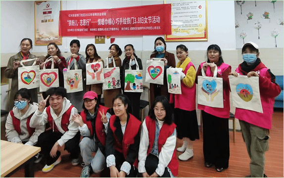 小小志愿屋,创造无极限。在绘画开始前,社区妇女们积极协助志愿者整理画笔、准备清水、分装颜料盘,在一切准备就绪后,志愿者们依托专业绘画优势,一笔一划耐心指导大家在便携式手提包上绘制精彩图案。“我要涂一个粉嫩的颜色,这样我的包包在春日中就会更加应景”居民王阿姨开心的讲到。同时,刘大姐兴奋的说道:“我准备画一个卡通人物,以后就把这个包当做女儿的玩具袋,她肯定很高兴。”在一阵阵欢声笑语中,志愿者成员与社区妇女居民们完成了独一无二的提包绘制。彩色的画笔不仅勾勒出了一幅幅绚丽多彩的图案,也描绘了大家对美的追求,对爱的理解,对美好生活的向往。