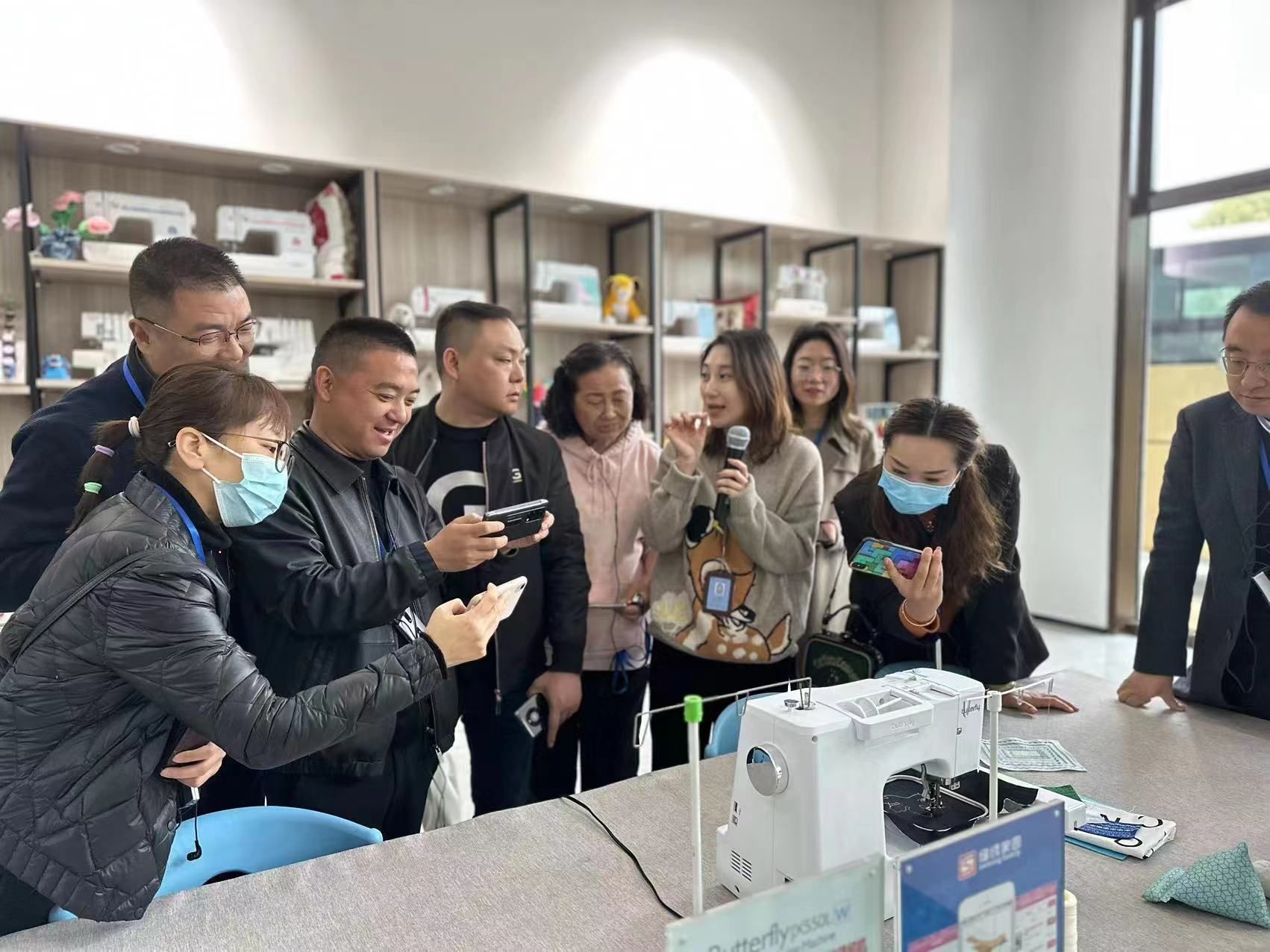 30日参观团前往上工申贝(集团)股份有限公司和上海威士机械制造有限公司,就高端西装(职业装)智能化设备及智能化微工厂和高端智能化针织设备等方面进行对接交流。老师们认真了解世界先进的智能化、信息化缝纫设备,就设备技术研发、设备应用等方面与公司技术人员深入探讨和交流。上海威士机械制造有限公司是一家从事服装智造装备、纺织品智能化洗涤整理等以及技术整合的高新技术企业,而上工申贝(集团)张敏董事长就公司国际化进程的主题介绍给参会者留下深刻印象:蝴蝶牌家用缝纫机老字号的演变历程,公司改制到走向国际所一直坚持“品质第一、创新发展”的战略,无不在大力“弘扬工匠精神,才最终勇立潮头”。